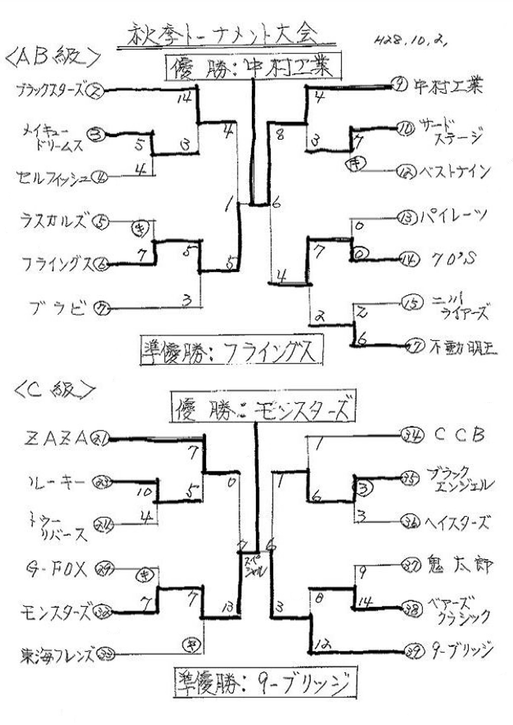 C級【優勝】モンスターズ 【準優勝】9-ブリッジ