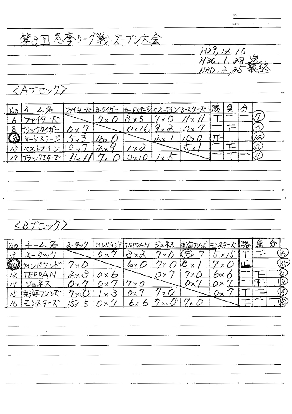 第3回 冬季特別リーグ戦大会