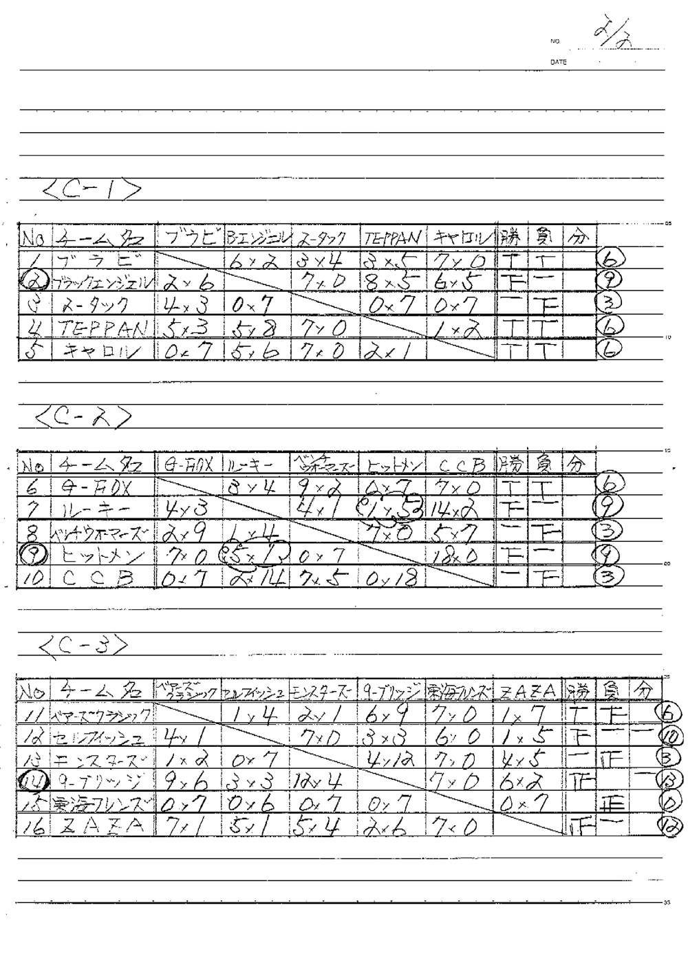 C-1【優勝】ブラックエンジェル C-2【優勝】ヒットメン C-3【優勝】9-ブリッジ