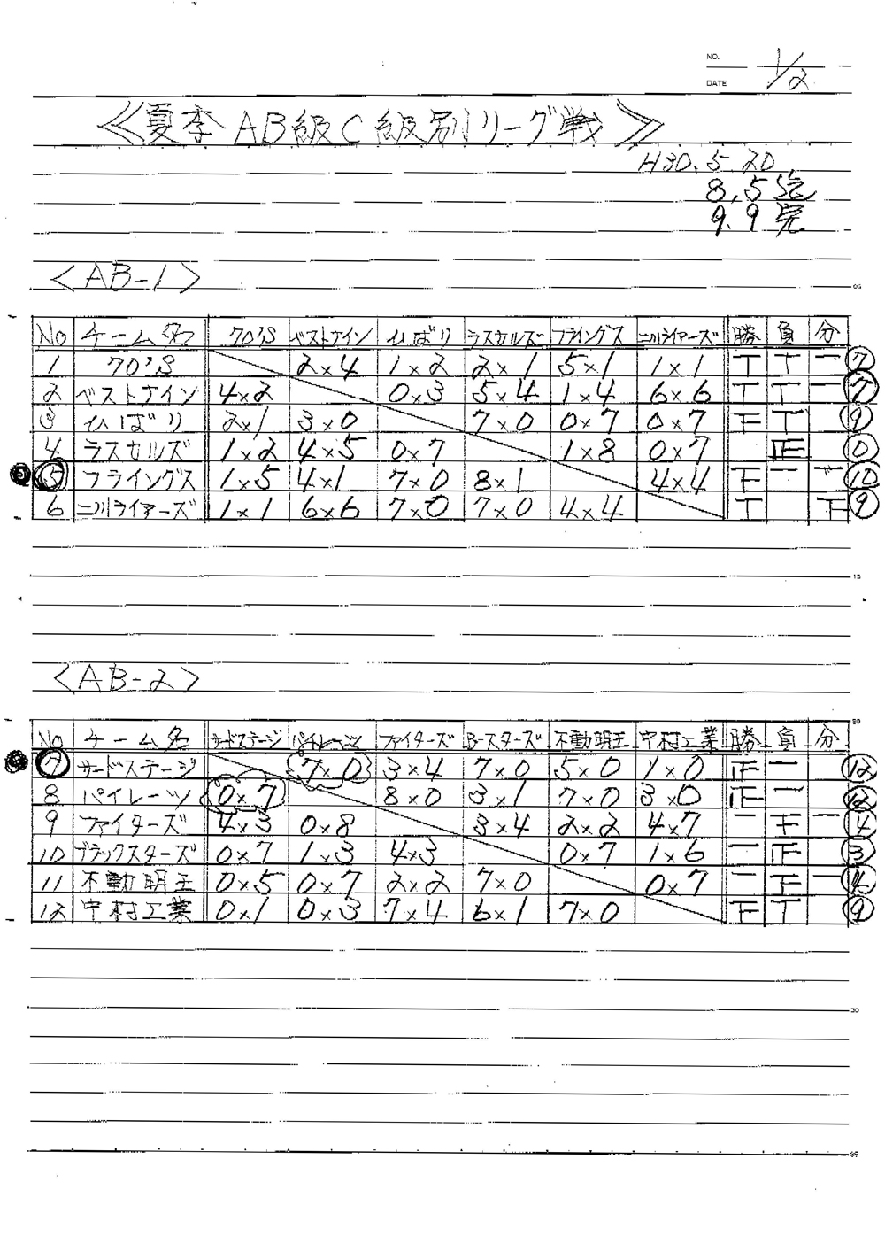 AB-1【優勝】フライングス AB-2【優勝】サードステージ