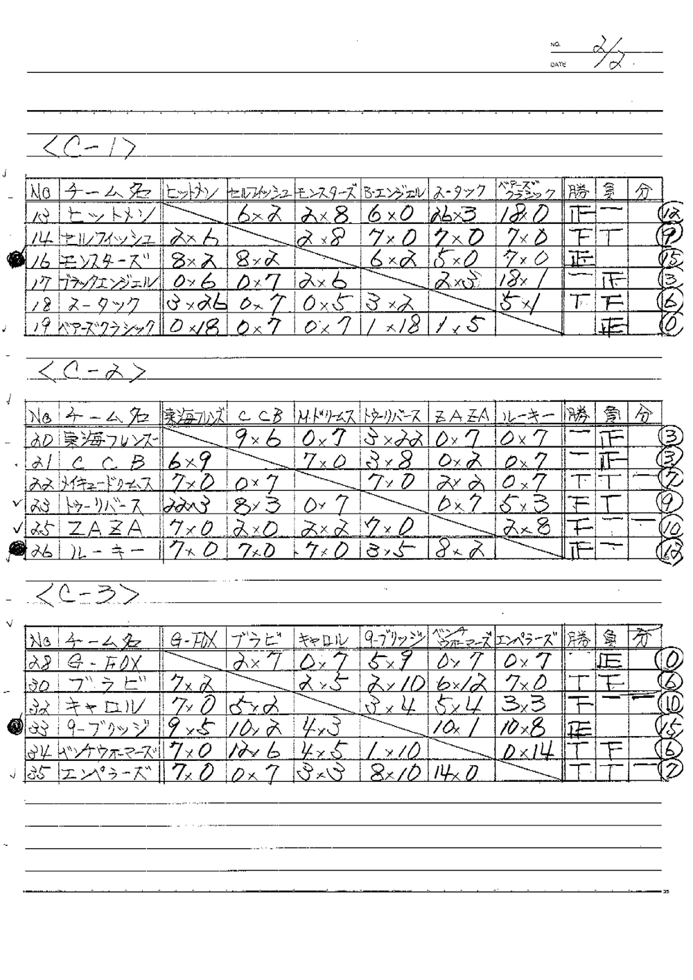 C-1【優勝】モンスターズ C-2【優勝】ルーキー C-3【優勝】9-ブリッジ