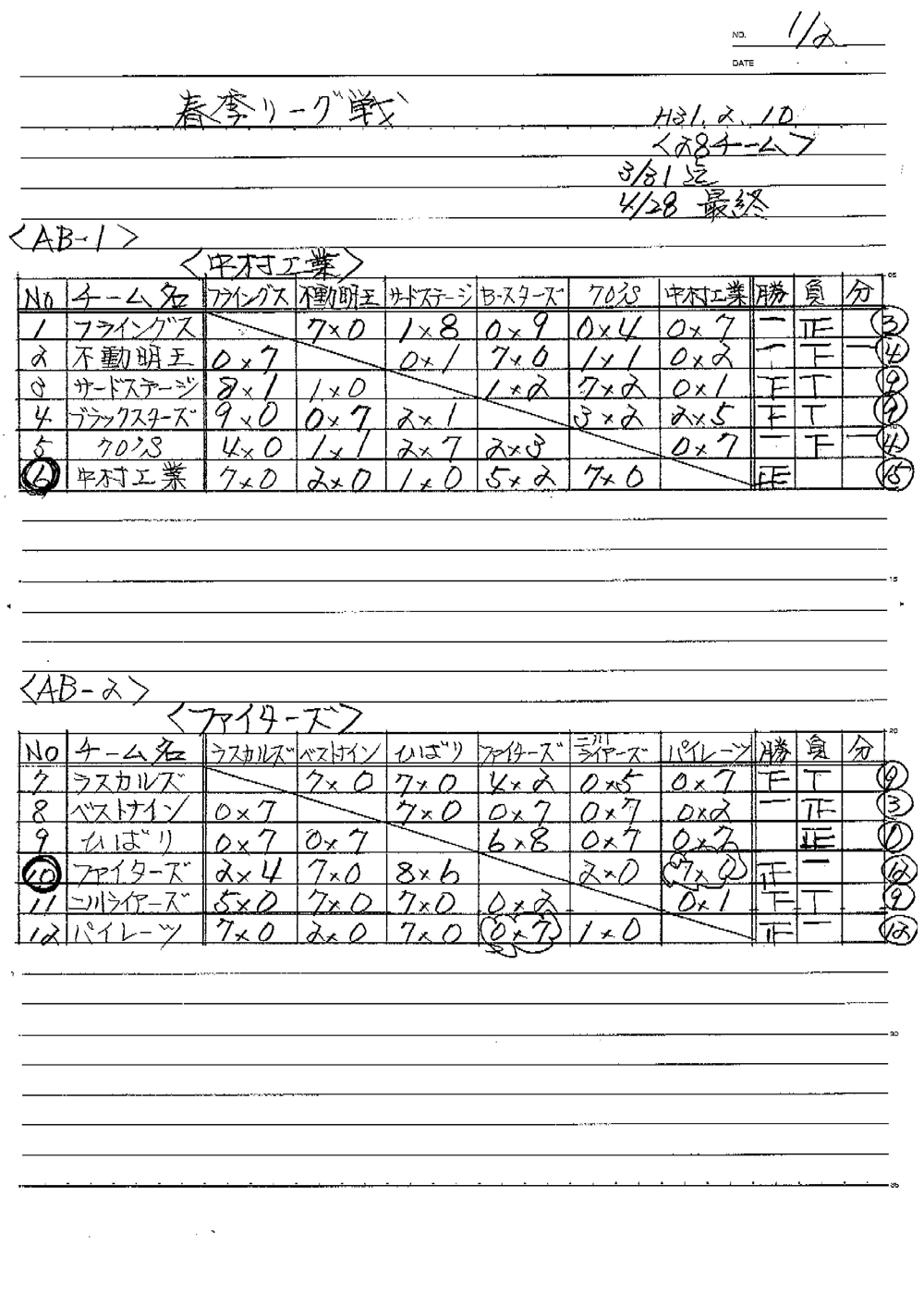 AB-1【優勝】中村工業 AB-2【優勝】ファイターズ