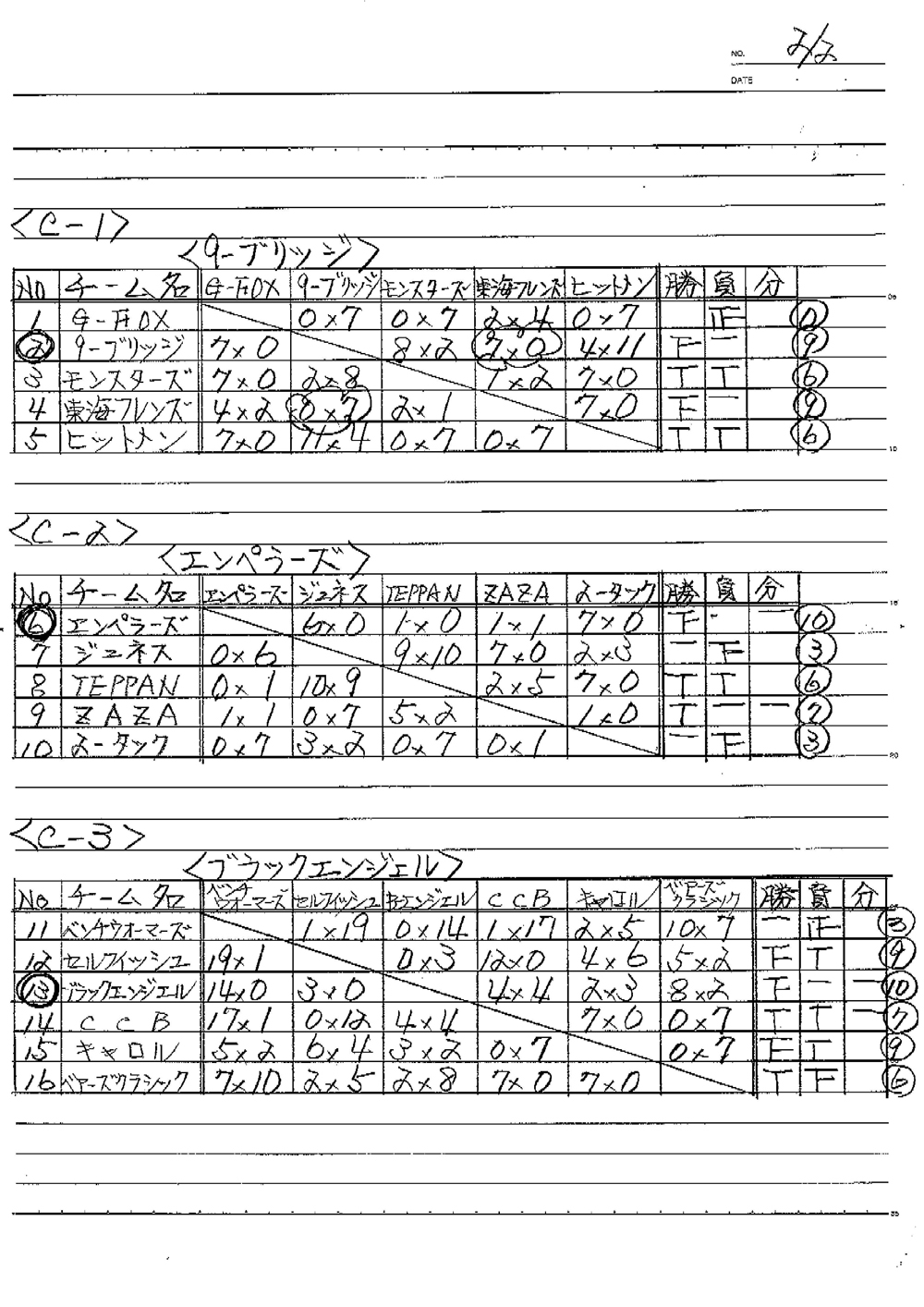 C-1【優勝】9-ブリッジ C-2【優勝】エンペラーズ C-3【優勝】ブラックエンジェル