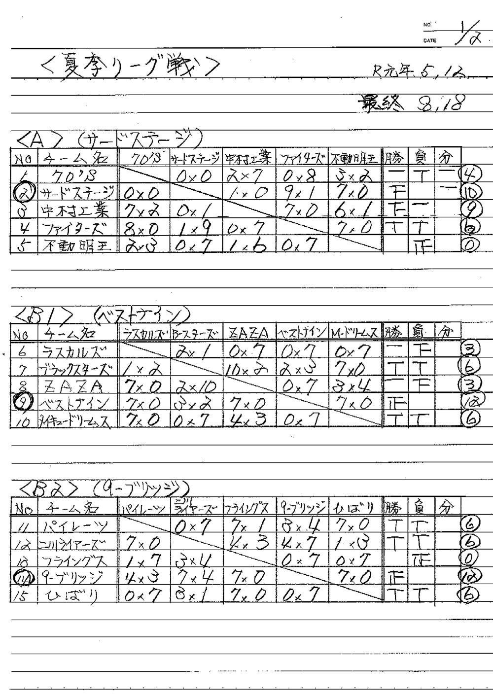 B-1【優勝】ベストナイン B-2【優勝】9-ブリッジ