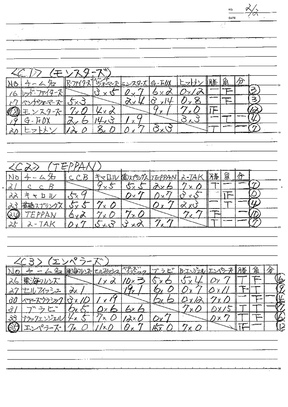 C-1【優勝】モンスターズ C-2【優勝】TEPPAN C-3【優勝】エンペラーズ