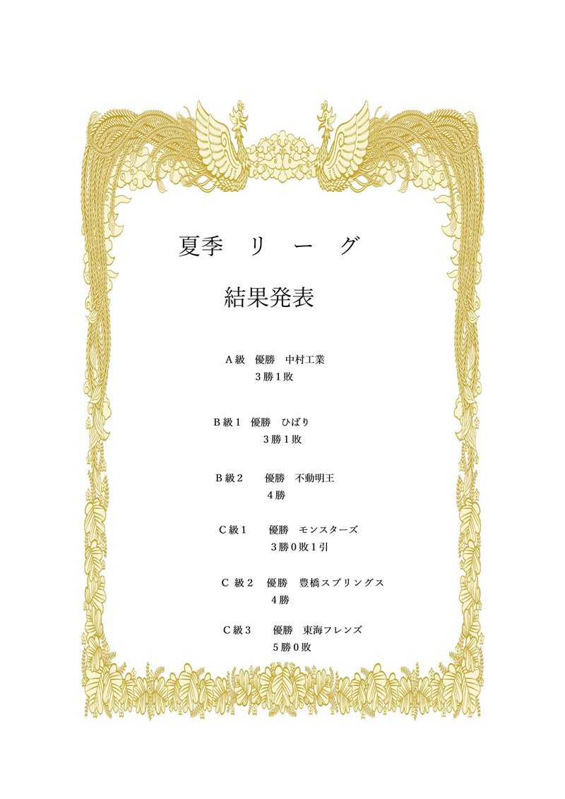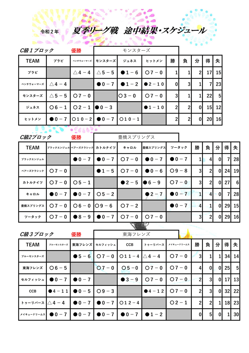 【C級1・優勝】モンスターズ 【C級2・優勝】豊橋スプリングス 【C級3・優勝】東海フレンズ