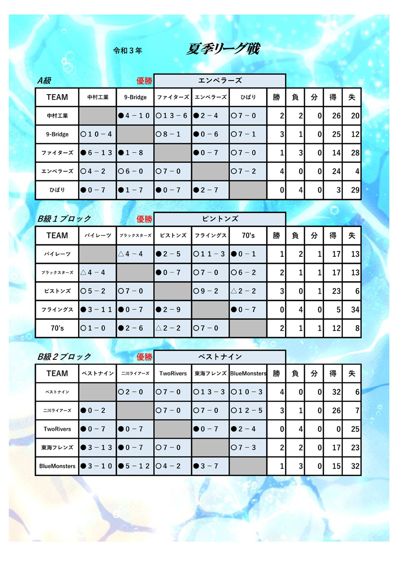 2021年 夏季リーグ戦