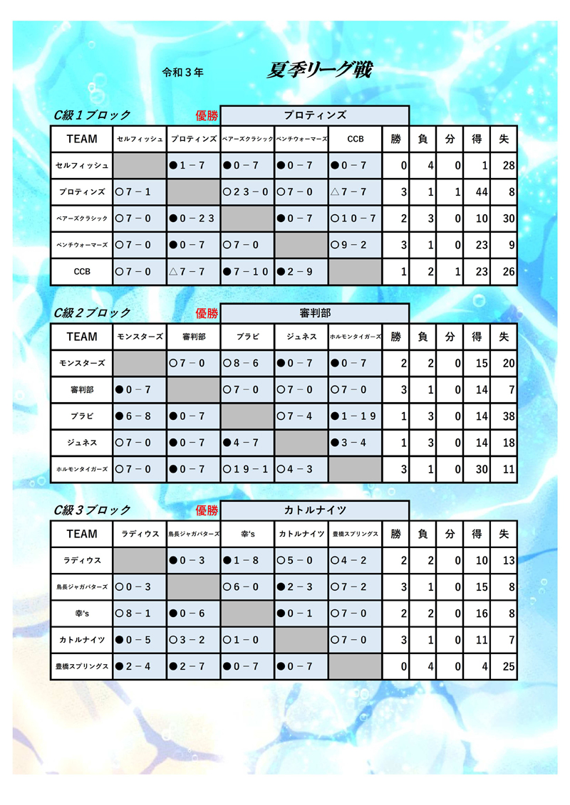 【C級1・優勝】プロティンズ 【C級2・優勝】審判部 【C級3・優勝】カトルナイツ
