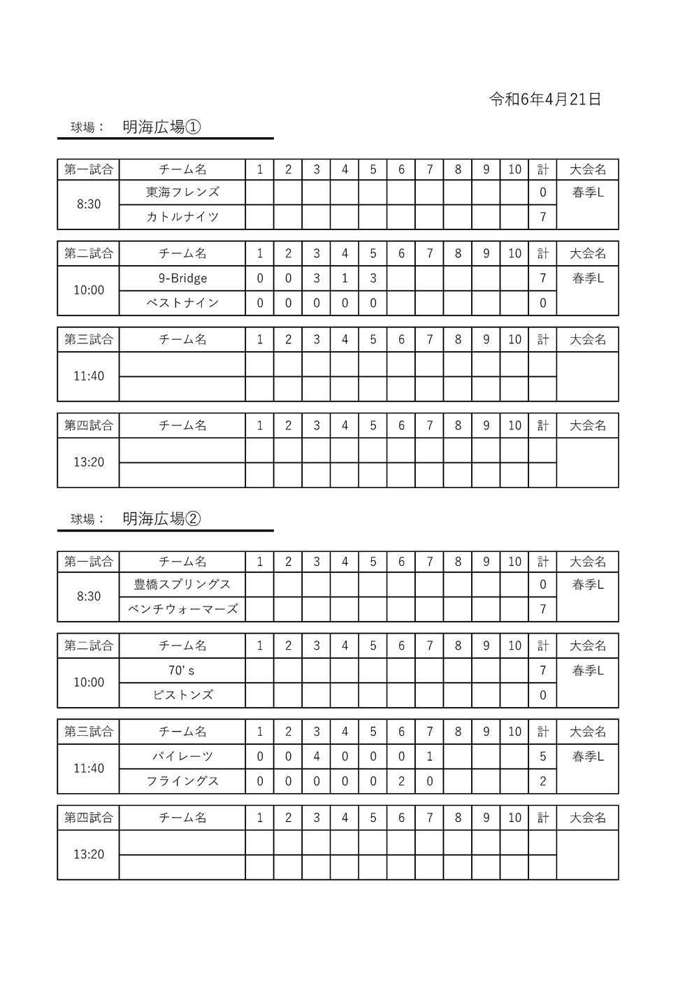 2024年4月21日の試合の日程結果です。