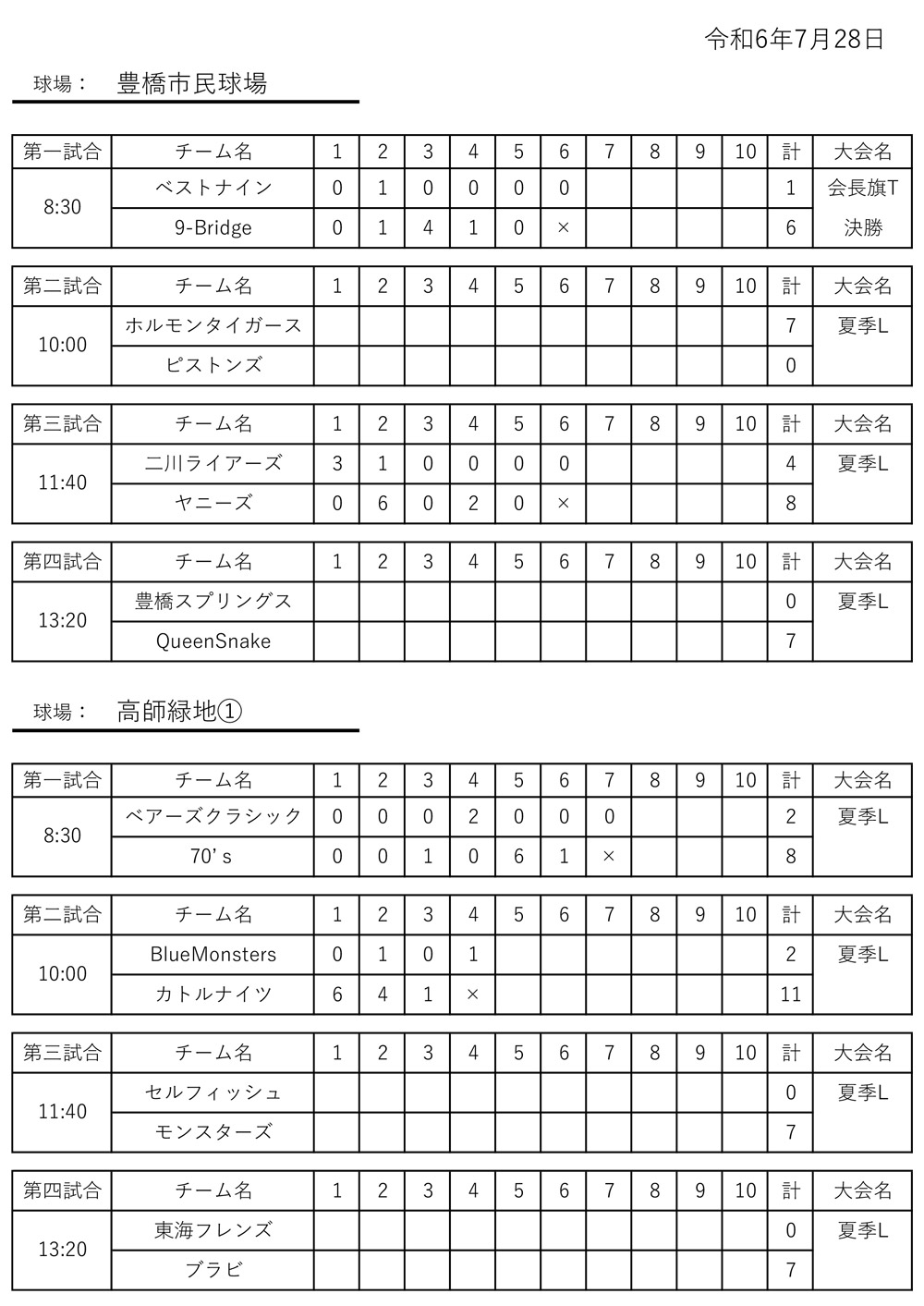 2024年7月28日試合結果