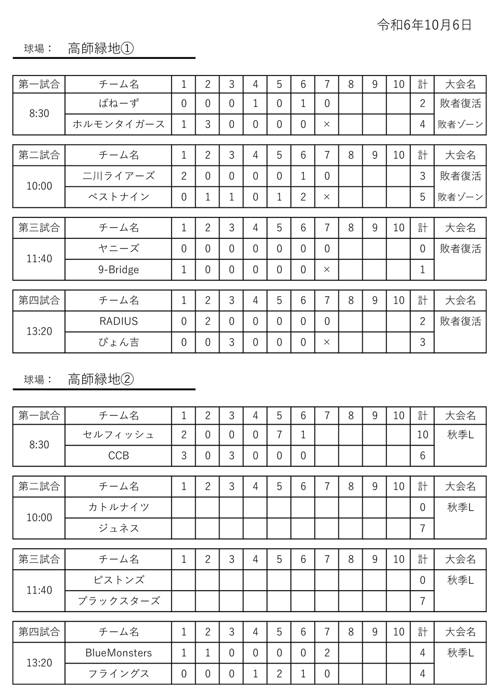 2024年10月6日 試合結果