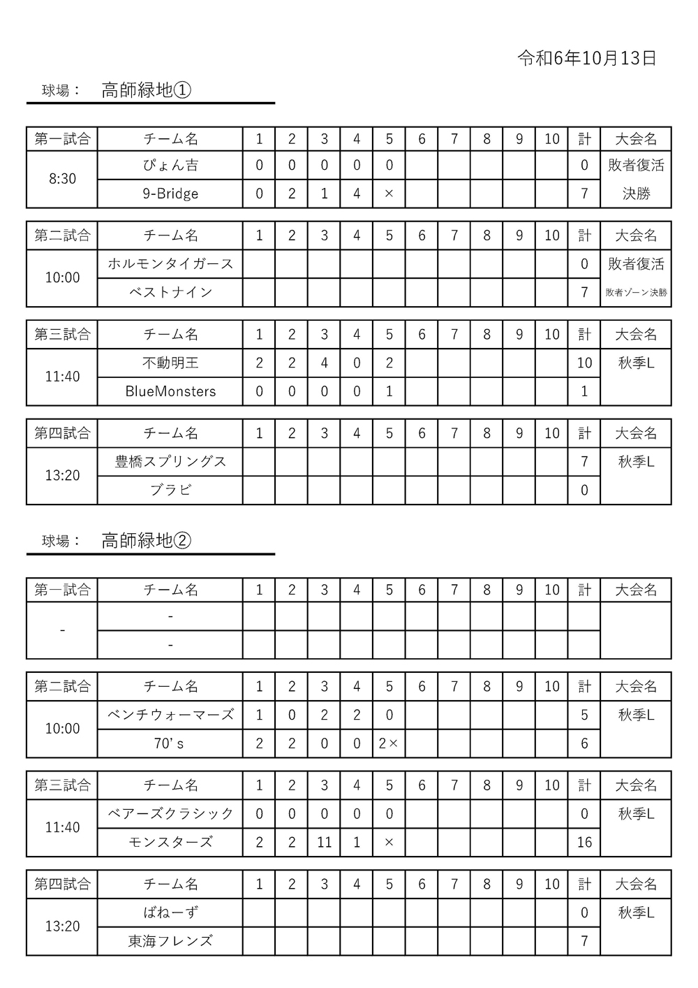2024年10月13日 試合結果