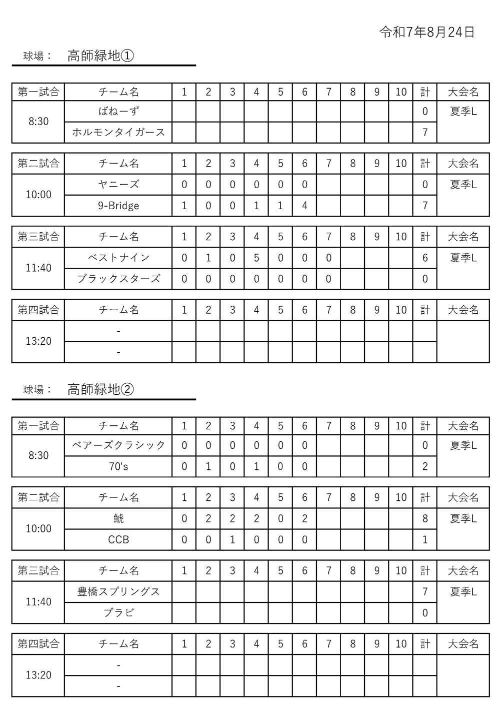 令和7年 夏季リーグ戦