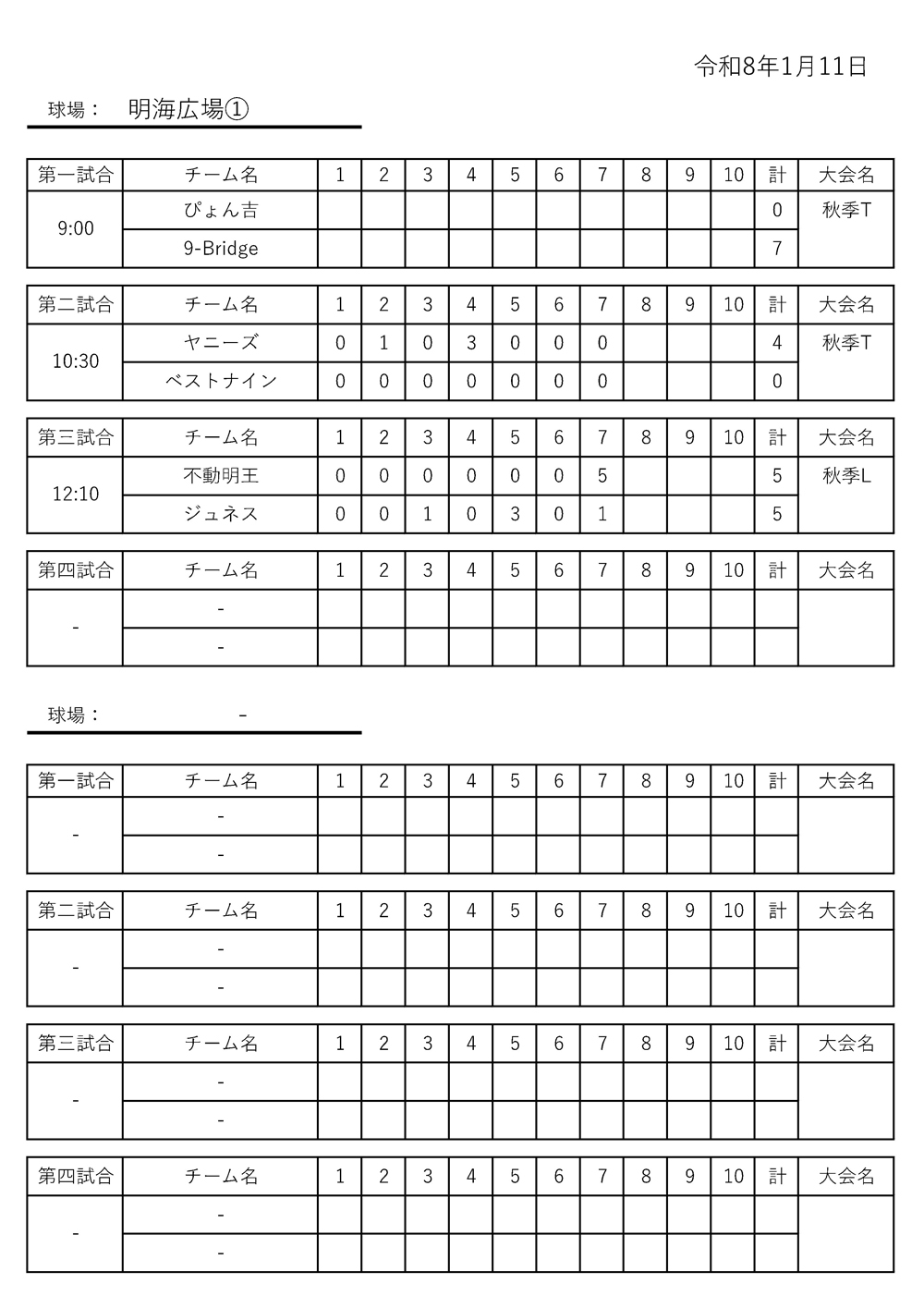 2026年1月11日の試合結果です。