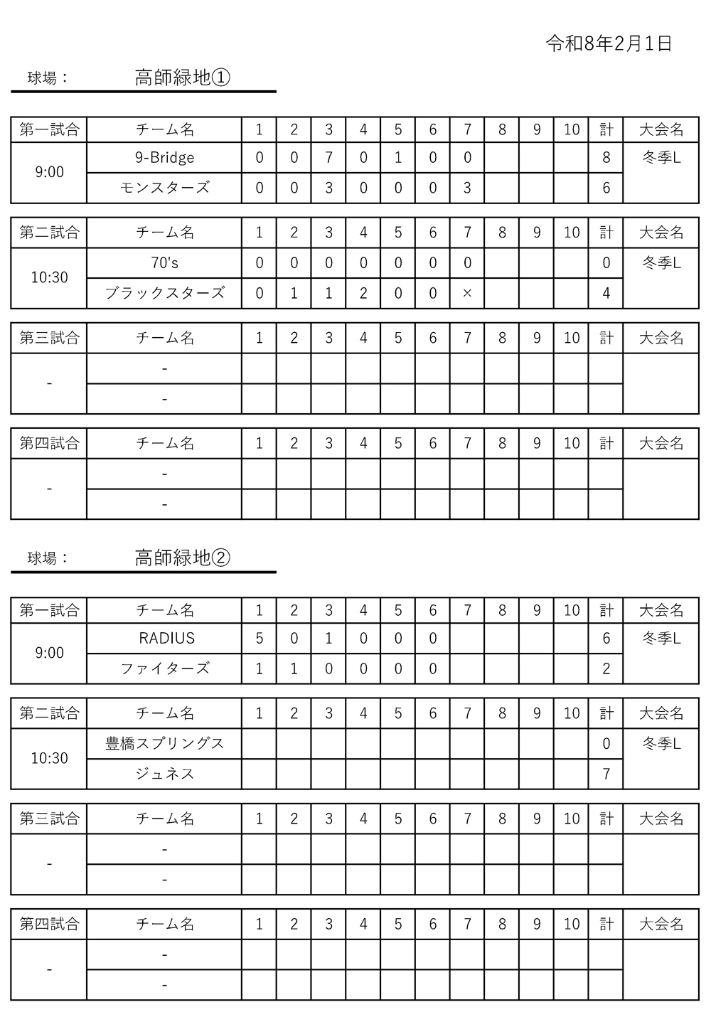 1月・2月は試合開始時間が30分変更となりますので、ご注意ください。
