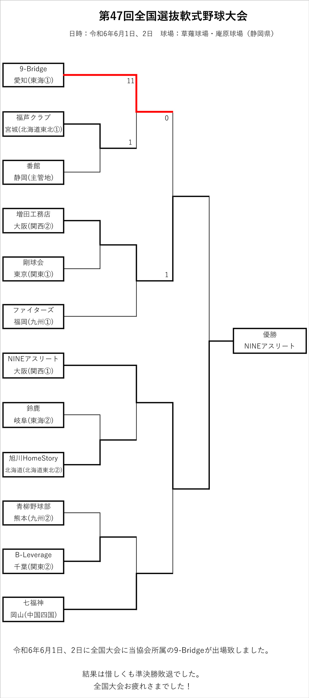 当協会所属チーム「9-Bridge」が全国選抜軟式野球大会に出場しました!